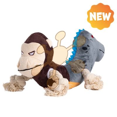 UNIQ PETS PLYŠOVÁ HRAČKA PRE PSOV SQUEAKIES opica a dinosaurus s pišťalkou 29x12x13cm