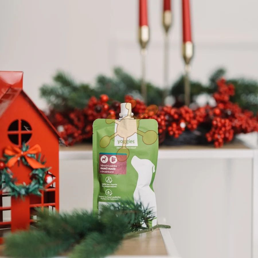 Limitovaná edícia vianočné Yoggies paštéty s jemným dančím mäsom, zeleninou a bylinkami je ideálnou sviatočnou odmenou pre každého psíka